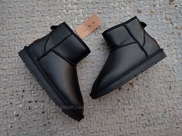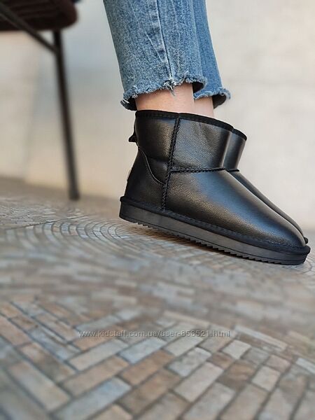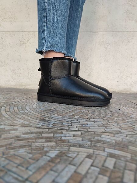 ЧЕРНЫЕ короткие угги из натуральной кожи унисекс (h=16) 36 р, 37 рарт U-137
