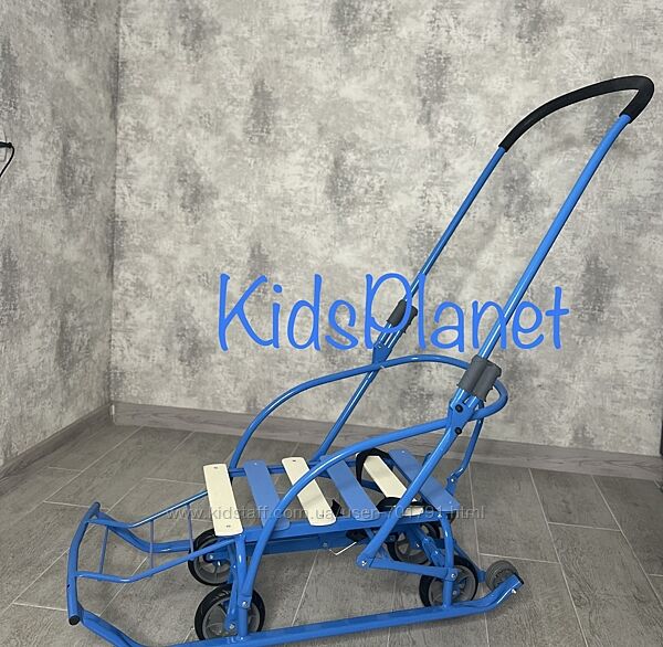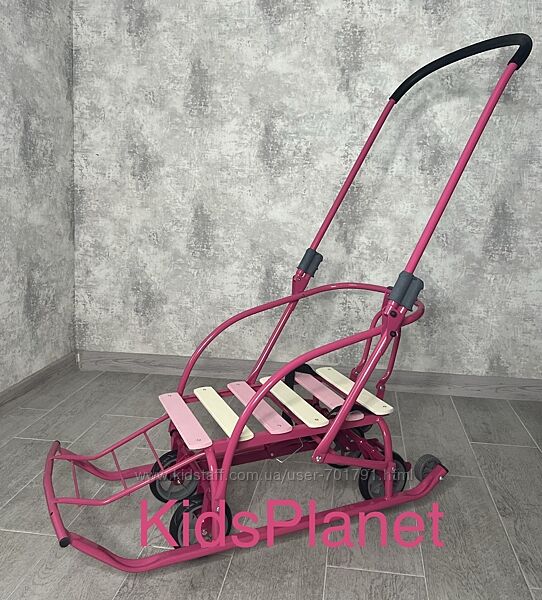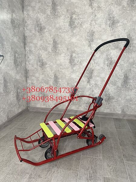 Санки дитячі «Мрія» з висувними колесами та батьківською ручкою (різні кольори).