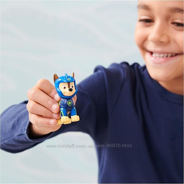 ЕКСКЛЮЗИВНА ФІГУРКА ЧЕЙСА: одягнений у свій синій гідрокостюм Aqua Pups із натуральними деталями у вигляді риб’ячої луски та надзвичайно крутий шолом для дайверів, Чейз готовий вийти та врятувати ситуацію!