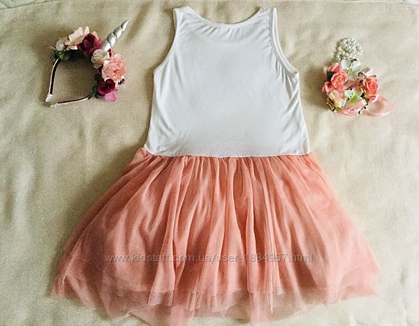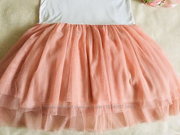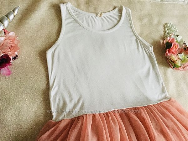 Брендовое Платье - Майка с супер - пышной юбкой. Трендовое. Верх : нежный белоснежный Трикотажик , низ : персиковая супер- пышная юбка - пачка.Есть мелкий ньанс , показала на фото крупным планом и след фото , как выглядит в огромном фатиновом объёме. Конечно , в носке не заметно, так как очень пышная юбка. Но... не сказать о ньансе не могу. Цену , с учетом этого снизила. В остальном состояние прекрасное