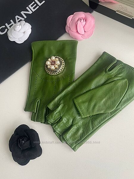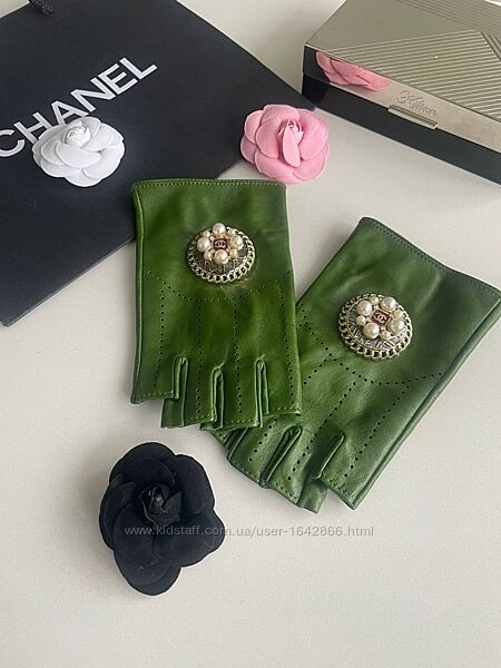 Подробное описание: Шкіряні напіврукавички мітенки Chanel в наявності
