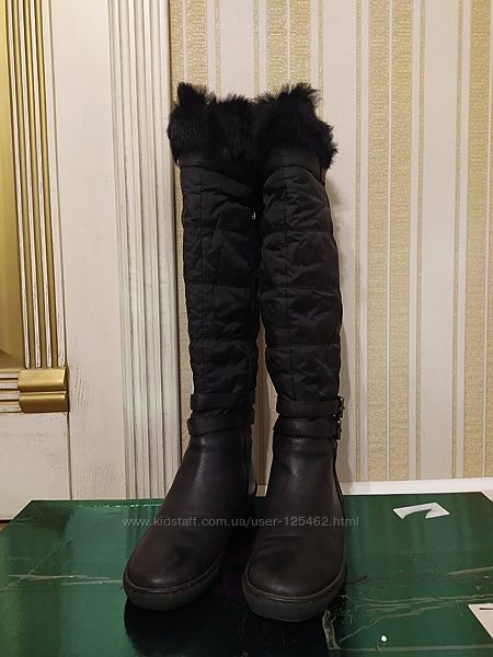 Шикарные высокие зимние сапоги Gucci р36 стелька 23см мех по щиколотку дальше флис Низ натуральная кожа верх плащевка опушка натуральный мех кролик сбоку замок. Высота до колена. Теплые очень круто сидят на ножке. Состояние отличное Цена 500грн