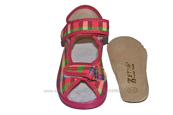 Тапочки Zetpol дівчинка. Текстильне взуття, натуральна тканини, дихаючі матеріали. Шкіряна, профілактична устілка. Зручна колодка на резиновій, не слизькій підошві. Липучки застібки добре фіксуються і регулюються по ніжці. Виробник Польща. Хороша якість за розумною ціною. Розміри : 25 (15,8см) повномірки Устілка повністю від краю до краю, витягується. Добре носяться та зручні діткам.