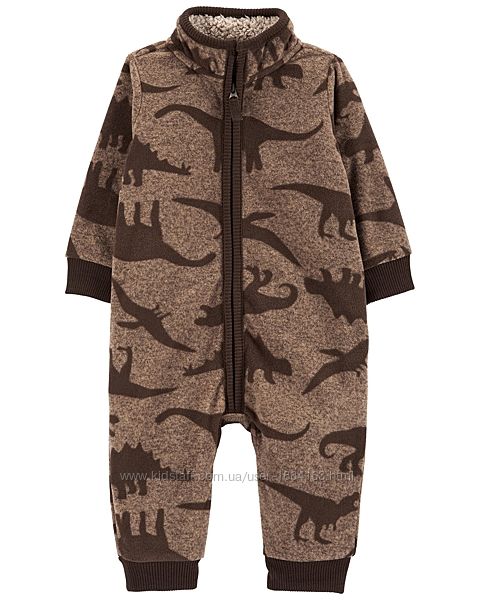 Флисовые комбинезоны американского бренда Carters. Застегиваются на молнию. На рукавах и штанинах хлопковые манжеты. По всему изделию принт динозавров.Очень мягкие и приятные на ощупь. Вашим малышам будет тепло и уютно