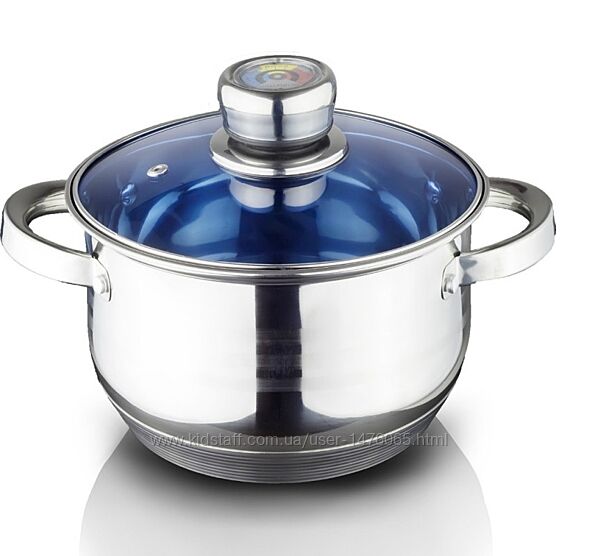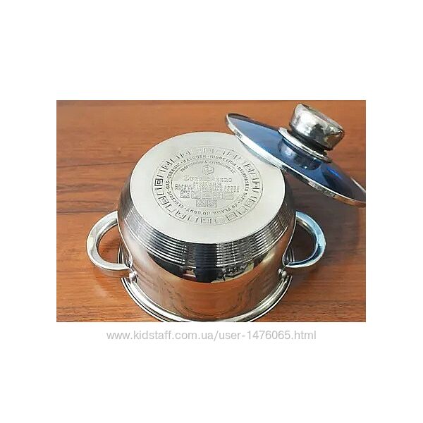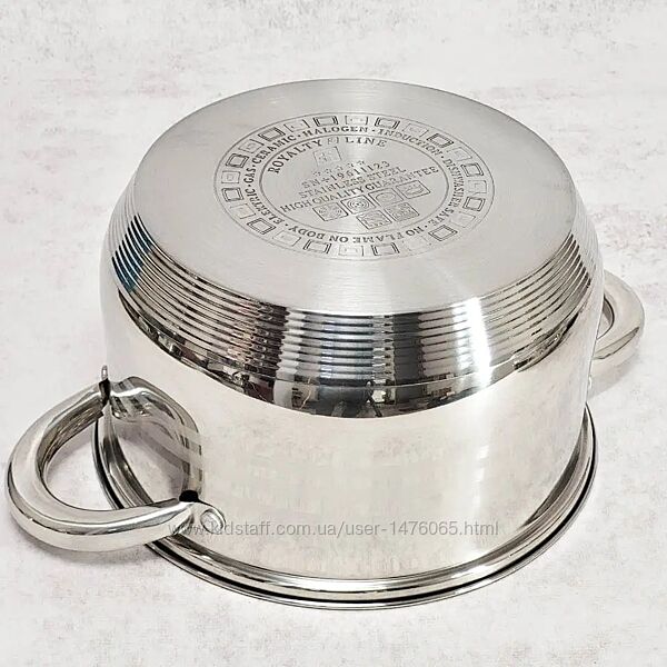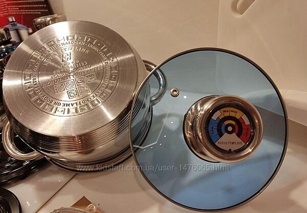 Привезена з Європи якісна каструля від німецької марки Royalty Line. Об´єм каструлі - 2,1 л, матеріал виготовлення - нержавіюча сталь, товсте багатошарове дно, що акумулює тепло і зберігає енергію, сковорода підходить для використання на газових, електричних, індукційних, склокерамічних кухонних плитах і поверхнях, в комплекті зі сковородою іде скляна кришка з ненагрівною ручкою і отвором для випуску пари (кришка може бути з прозорого скла, тонованого блакитним, а також з нержавіючої сталі), ручки каструлі, що не нагріваються, країна виробництва каструлі - Німеччина (Словаччина), хороша європейська якість.Предложения Premium магазинов