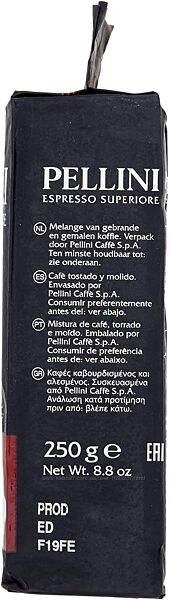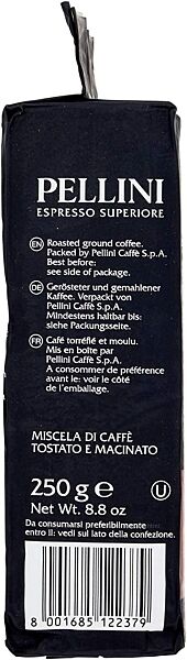 Pellini запрошує Вас перенестися до старої Італії та відчути чарівний інтенсивний аромат та гармонійний смак кави Pellini Espresso Superiore. Унікальний купаж високогірної арабіки та робусти приємно вражає своєю насиченістю з витонченим шоколадно-фруктовим післясмаком. Якщо Ви готуєте каву у кавоварці, турці або заварювати в чашці кава Pellini Espresso Superiore те, що треба!Сьогодні Pellini -поважний італійський кавовий бренд з багаторічною історією. Фабрики Pellini входять до п´ятірки найбільших у Італії. Завдякі унікальному обладнанню, дотриманню технологій та міжнародних ситем сертифікації UNI EN ISO 9002 та HACCP кава Pellini відома у більш ніж 30 країнах світу.