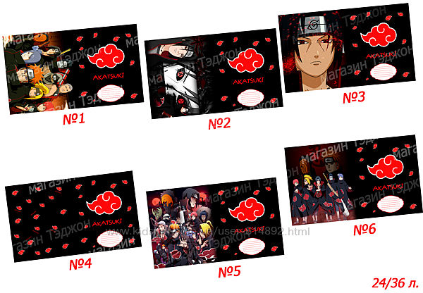 Зошит аніме Наруто Акацукі, Тетрадь школьная Наруто Акацуки набір 5 шт