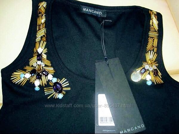 Продам новую с бирками майку итальянского известного бренда MANGANO, отличная модель,очень классно смотрится и сидит,размер S, отлично сядет на S,M.Крой по фигуре. Цвет чёрный очень красивая золотая фурнитура и расшита камнями и бусинами,.Привезена из Италии, цена очень снижена.