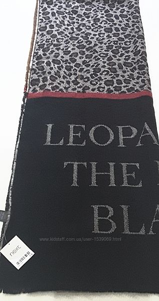 Леопардовий шарф - штучка з розряду "must have", оскільки поєднується з безліччю речей. Мегамодний шарф британського бренду Next розмір 200х70 см з написом Leopard is the new black ( Леопард - це новий чорний) зігріє вас в холодні дні і додасть індивідуальності вашій цибулі!Такий шарф можна носити зі шкіряними жакетами, джинсовими куртками, парками, пуховиками, стане вдалим доповненням для чорного, бежевого, коричневого чи червоного пальта.