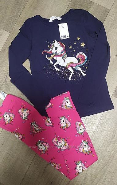 Яркие лосины леггенсы H&M двунитка с единорогами 140 -146-152 см см