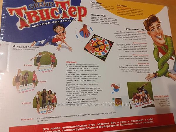 Найпопулярніша гра Твістер Danko Toys - весела гра для задоволення всієї компанії. Гравці крутять рулетку, потім певну частину тіла ставлят на певне коло.Не можна торкатися поля колінами, ліктями.