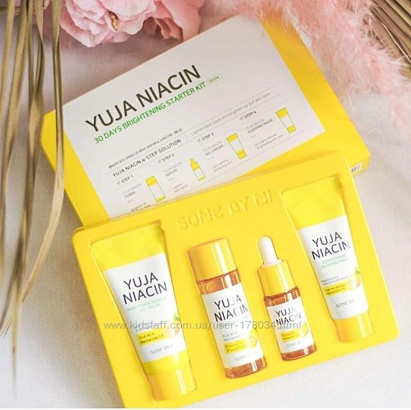 Осветляющий набор с юдзу Some By Mi Yuja Niacin 30 Days Brightening Starter KitНабор миниатюр с экстрактом юдзу для выравнивания тона состоит из 4-х мини-версий продуктов . Подходит для всех типов кожи, действие направлено на выравнивание тона кожи и осветление нежелательной пигментации и пост-акне. Средства насыщают кожу витаминами и наполняют здоровым сиянием.