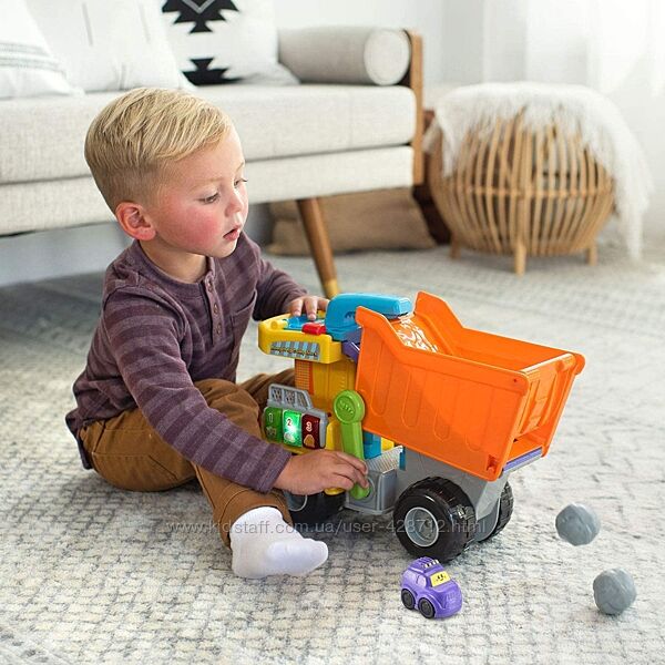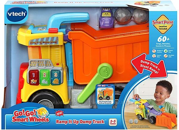 VTech Go! Go! Smart Wheels Ramp It Up Dump Truck Игрушка АНГЛОЯЗЫЧНАЯ Оригинал Игрушка 2 в 1 2-in-1 самосвал и трек. В комплекте одна машинка. 60+ песен и мелодий, звуков и фраз3 кнопочки начав на которые кнопочки светиться и воспроизводятся звуковые эффекты, счет на английском языке и др. фразы. Игрушка большая!