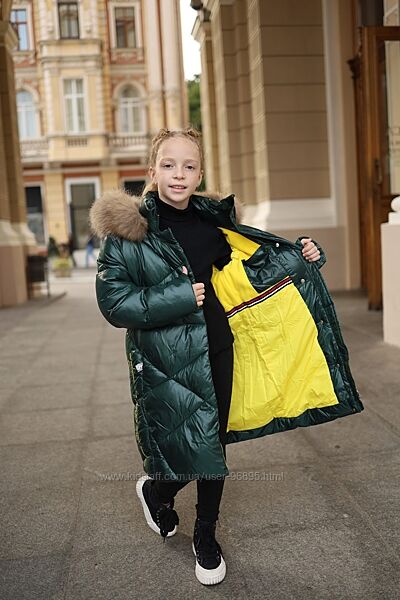 Пальто для дівчинки, з капюшоном.Опушка з натурального хутра (єнот).