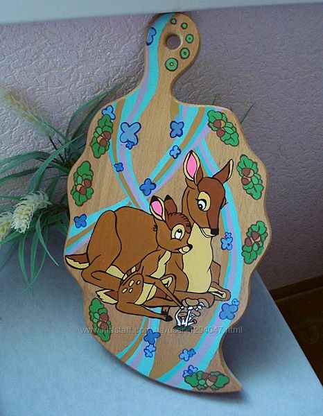 Фото 6. Разделочная доска из бука, с с милым олененком с мамой. Размер 38,5х21 см.