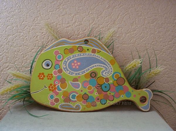Фото 8. Разделочная доска из бука, с забавной рыбкой. Размер 28х17 см.