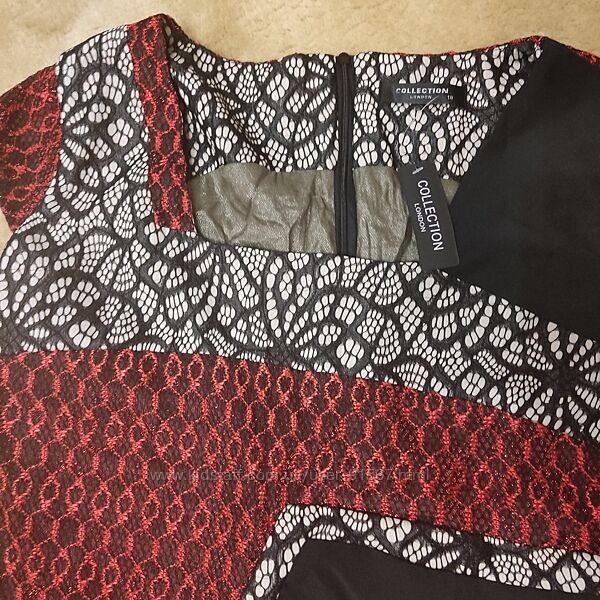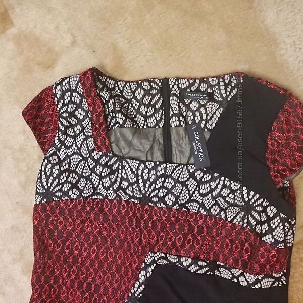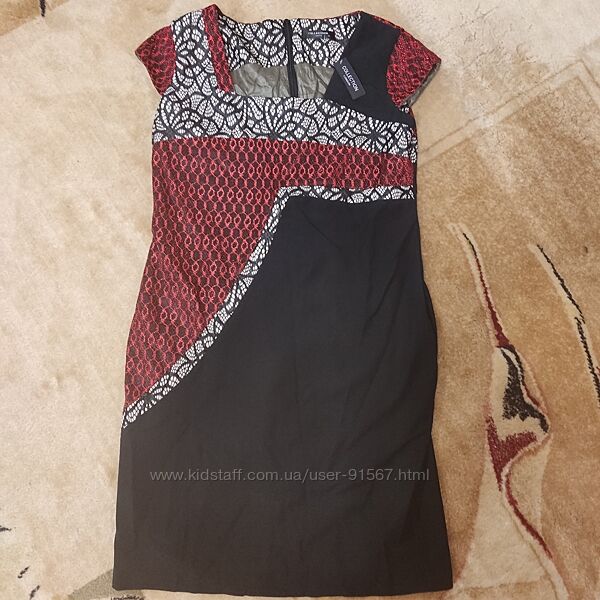 Эффектное элегантное платье Debenhams Collection из Англии . Классический женственный силуэт , будет актуален когда и где угодно . Плотная красивая ткань садится по фигуре , приталенное . А яркая контрастная геометрическая вставка добавляет фактурности . Благодаря асимметричности и разноцветности зрительно стройнит и уменьшает объемы. Декольте с вырезом каре . Гипюровая вставка продолжается и на спинке . Очень интересное платье которое подойдет не только на торжество , но можно носить и каждый день . Размер указан 18 , но лучше сядет на 14 (48) -16 (50). Длина 100 см , под мышками 55 см , тянется до 60 без учета хороших выточек , от 48 тянется 52, бедра 60 см тянется до 64см
