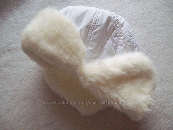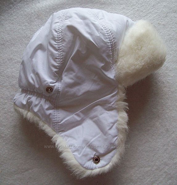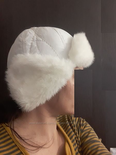 Предлагаю симпатичную белоснежную зимнюю шапку. Верх плащевка, отделка - искусственный мех, внутри синтепон. Есть кнопки для фиксации на затылке, завязок под подбородок нет.Шапка новая, покупала подростку, но из-за требовательного цвета так никуда и не надели.