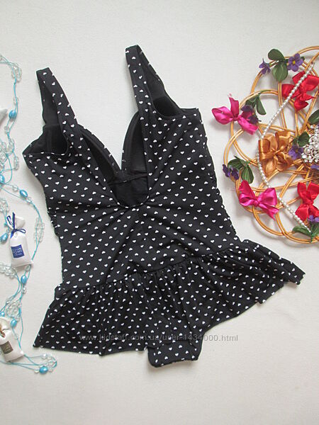 Подробное описание: Суперовый сдельный слитный купальник платье батал в мелкие сердечки Reger