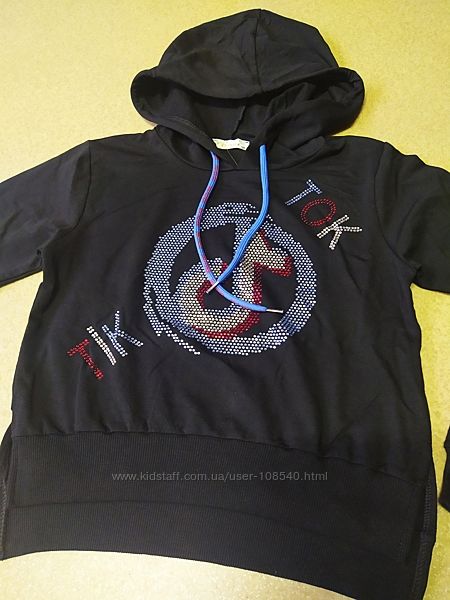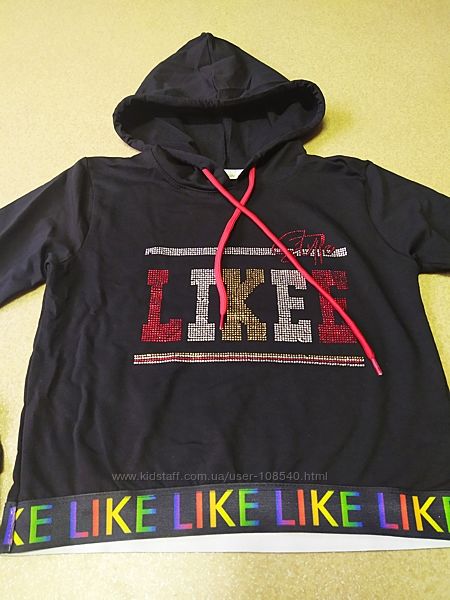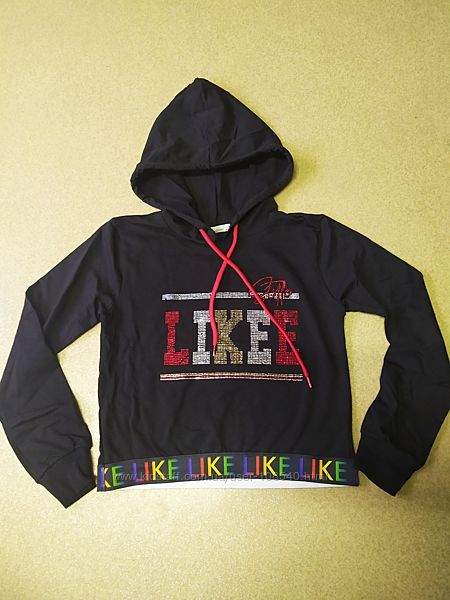 Ф. 1-3. Худи толстовка с капюшоном для девочки Likee. Отличное качество. Размер:140р. Дл. 43. ПОГ 41. Рука от плеча 52см.
