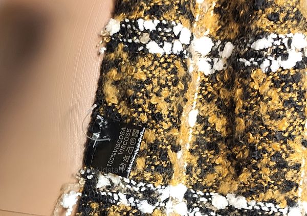 Шарф женский в клетку AccessorizeОригинальный большой шарф из мягкой буклированной пряжи (100% вискоза) с бахромой по краям. Дизайн в стиле оверсайз. Основной цвет горчичный.