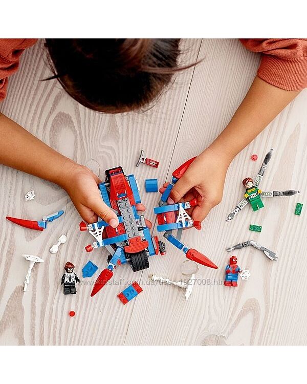 Конструктор LEGO Marvel Super Heroes 76148 «Человек-паук против Доктора Осьминога» - лучший подарок для всех поклонников вселенной Марвел. Конструктор с веселым Человеком-пауком предлагает снова встретиться с любимым героем и помочь ему справиться с очередным суперзлодеем. В этом маленькому супергерою обязательно поможет его сверхскоростной мотоцикл, который к тому же обладает особыми возможностями. Поскольку набор LEGO включает в себя сразу несколько минифигурок, дети смогут развлекаться целой компанией на протяжении нескольких часов.