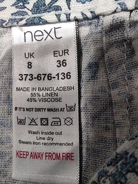 Классная летняя юбка Next с карманами, сделана в Бангладеш, состав - 55% лён и 45% вискоза. Состояние идеальное! Абсолютно никаких нюансов.Размер 8, EURO 36. Смотрите внимательно замеры: