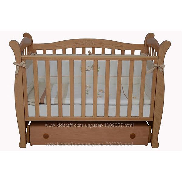 Материал кроватки : бук, ольха . Считается, что мебель из бука положительно влияет на здоровье человека и обладает особой энергией и успокаивающим действием . Внутренний размер: 120х60Характеристики кроватки: