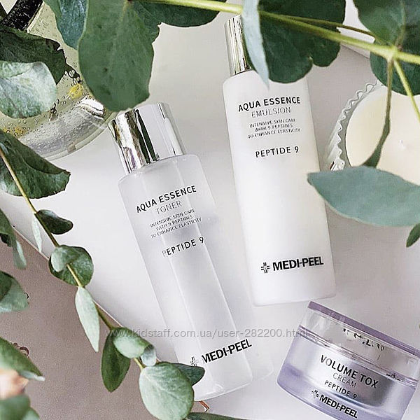 Пептидний тонер-есенція для зрілої шкіри Medi-peel Peptide 9 Aqua Essence Toner інтенсивно зволожує, тонізує, зміцнює, омолоджує шкіру та уповільнює процеси старіння. Сприяє розгладжуванню зморщок і зменшує глибину шкірних заломів, підвищує тургор, робить шкіру зволоженою, м´якою та оксамитової.