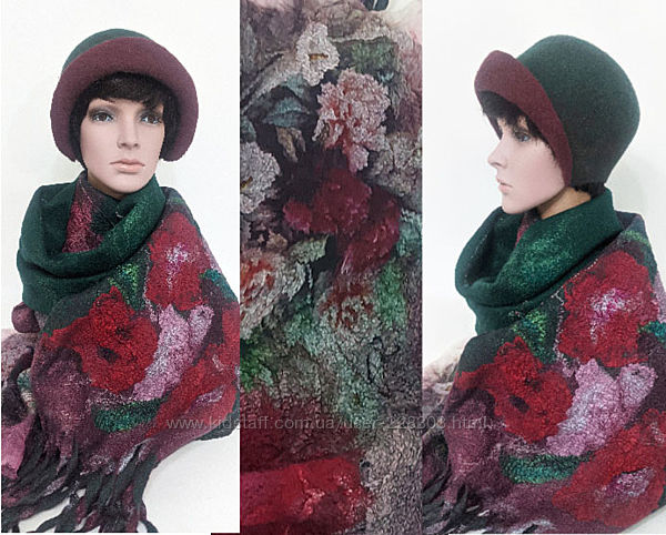 Материалы: 100% шерсть, натуральный шифон, декоративные растительные волокна и волокна шелка