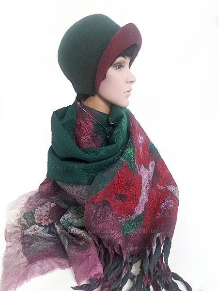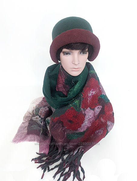Розмір шляпка - 57 см, шарф - 212 см х 44 см ( без кистей)