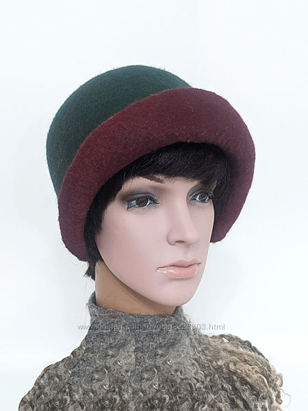 Шляпка ′Симпатия′ все сезонная : глубокая, с комфортной посадкой; закрывающая ушки . Войлок ′дышит′, согревает, но не парит, что позволяет носить головной убор как в межсезонье так и зимой.