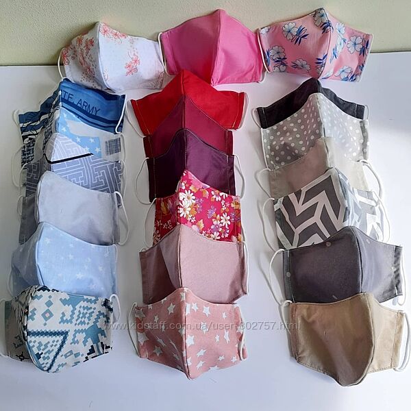 Подробное описание: Маски тканинні багаторазові двошарові різного кольору з кишенею два розміри