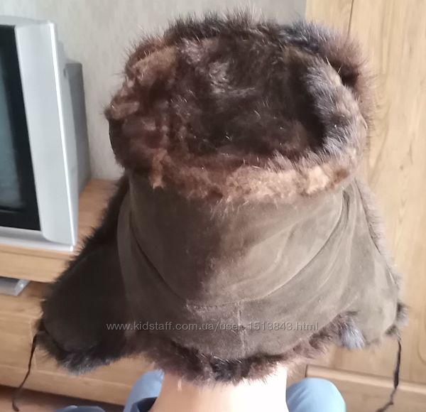 Шапка-вушанка чоловіча норкова, так звана "обманка - хутро тільки зверху. На відвороті - натуральниа замша. Розмір 54-56. В доброму стані.Довжина внітрішньої окружності - 51 см.