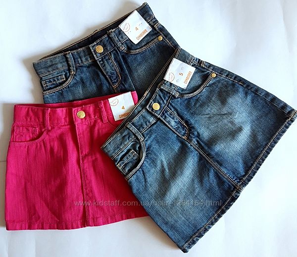 Дитячі джинсові спіднички американської торгової марки дитячого одягу Gymboree для дівчаток 4-х років (ріст 99-107 см) та5-ти рокрві (ріст 107-115 см. Заміри: довжина 28 см, ширина в поясі 28 см),.
