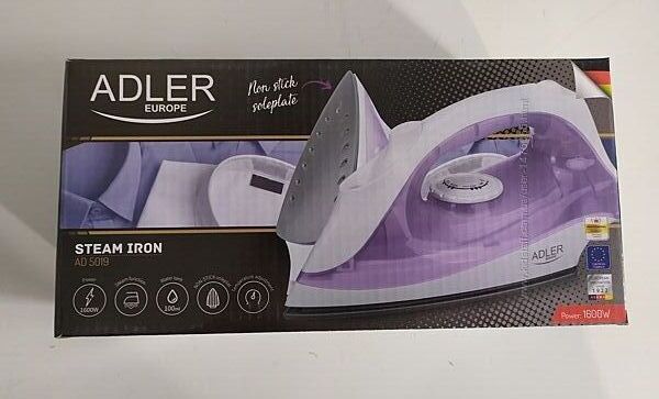 Привезенный из Европы новый утюг Adler AD5019. Мощность потребления (макс.) - 1600 Вт, функция отпаривания, резервуар доля воды 100 мл, антипригарное покрытие (тефлон), регулировка температуры. Страна производства - Польша. Отличное европейское качество. Настоящая документированная гарантия - 6 месяцев.Оплата - наложенный платеж либо предоплата на карту. Способы доставки: самовывоз, Новая Почта, Укрпочта, Деливери, Justin (отправка 2 раза в неделю). Возврат товара – в течении 14 дней при сохранении упаковки и отсутствии следов его использования.