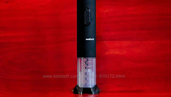 Штопор Comfort Wine bottle opener имеет в комплекте: электроштопор, подставку-нож (резак) для снятия фольги, инструкция по эксплуатации, гарантийный талон.