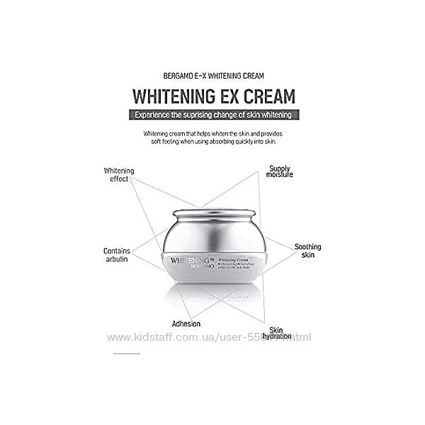 Bergamo Whitening EX Wrinkle Care Cream – антивозрастной крем с осветляющим эффектом, увлажняет кожу, борется с возрастными изменениями за счет лифтинг-эффекта.Основные составляющие крема – осветляющая формула, гиалуроновая кислота, экстракт оливковых листьев.