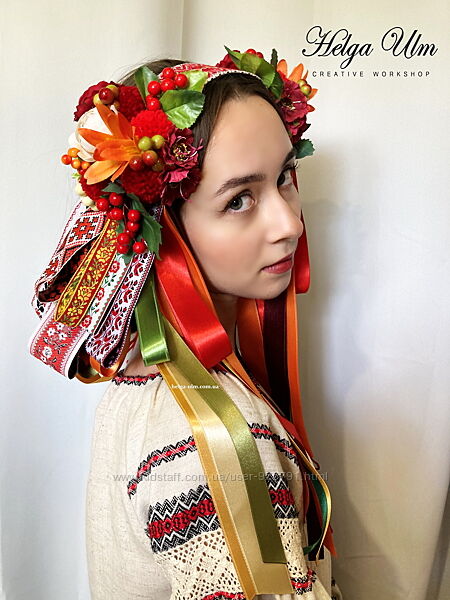 Подробное описание: Головний убір для українського костюму Вушка - оранж.
