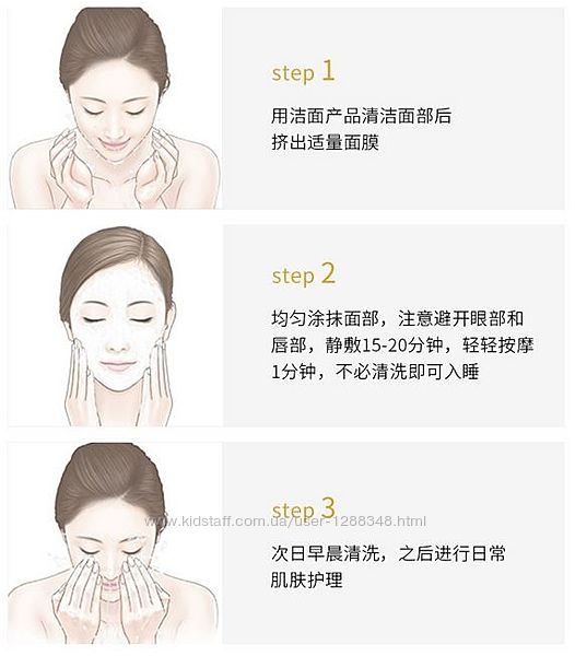 Применение: маску нанесите на чистую кожу за полчаса до сна, смывать утром. Применять 2-3 раза в неделю.