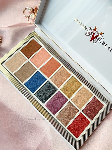 Новинка конца 2020 г от KVD vegan beauty, палетка теней, включающая 14 оттенков, 6 из который бархатистые матовые и 8 шикарных, шиммерных оттенков. Палетка имеет очень высокий рейтинг - 4.9 из 5 на американской sephora, большинство покупателей оценили ее на 5 баллов. Тени высокопигментированные, мягкие и бархатистые на ощуп, легко наносятся и растушовываются. Обладают высокой стойкостью. Поддон с тенями можно достать из футляра, а футляр, после того, как тени закончатся, можно использовать для хранения мелочей. Тени произведены в Италии. Объем продукта: 6 х 1,3 г 8 х 1,15 г.