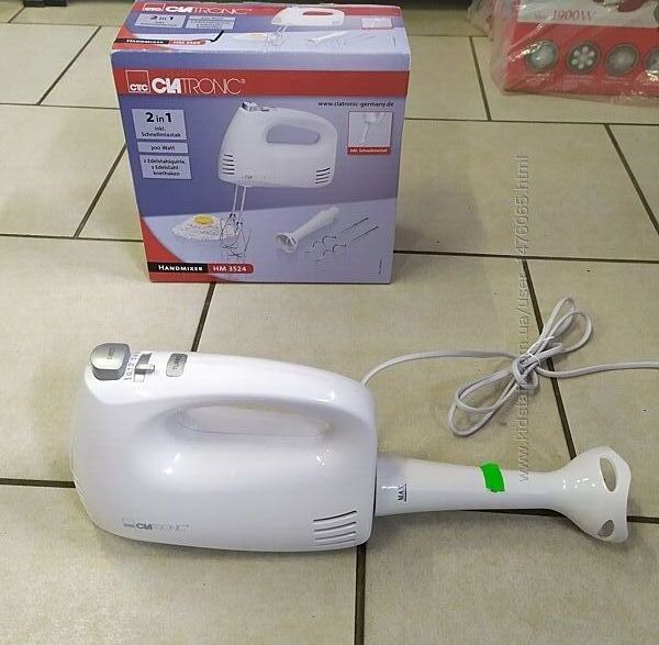 Привезенный из Германии новый миксер-блендер (2 в 1) немецкого производства Clatronic модель HM 3524. Мощность потребления (макс.) - 300 Вт, 5 скоростей, в комплекте венчики и тестомесы из нержавеющей стали, съемная насадка блендера. Отличное немецкое качество проверенное годами. Страна производства - Германия. Настоящая документированная гарантия - 6 месяцев.Оплата - наложенный платеж либо предоплата на карту. Способы доставки: самовывоз, Новая Почта, Укрпочта, Деливери, Justin (отправка 2 раза в неделю). Возврат товара – в течении 14 дней при сохранении упаковки и отсутствии следов его использования.