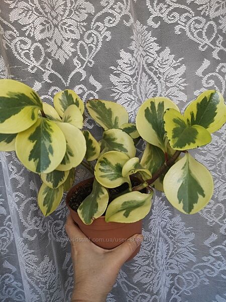 Продам Пеперомию вариегатную крупнолистную 100 грн, фото, эффектное растение, глянцевые мясистые листья. Не прихотлива в уходе. Содержание рассеянный свет, умеренный полив. Полезное растение в доме.Пересылаю после оплаты. Возврата нет