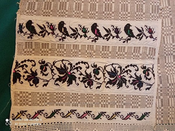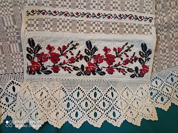Рушник старинный тканный с вышивкой и кружевом, 20-30х годов Полностью ручная работа.Длина 2 метра.