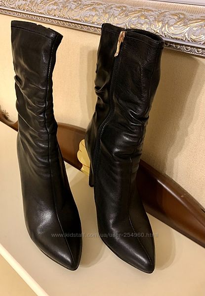 Кожаные полусапожки, в идеальном состоянии , каблук 11 см, стелька 26.Есть запасные набойки
