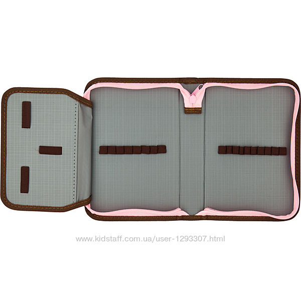 Пенал имеет 1 отделение с 1 отворотом. Каждое отделение имеет резинки для фиксации пишущих принадлежностей, что помогает сохранить порядок в пенале. Яркая подкладка помогает визуально выделить и легко найти необходимые канцпринадлежности.