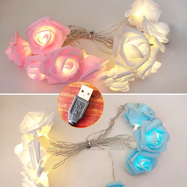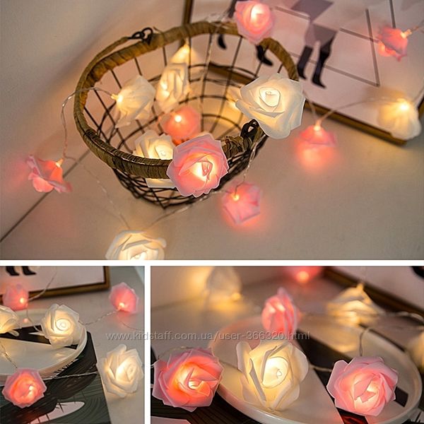 Подробное описание: Светодиодная гирлянда Декор Розы , 3 метра 20 ЛЕД