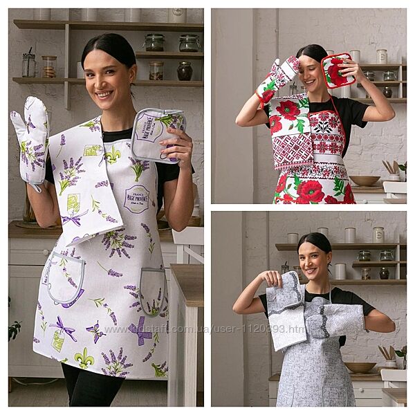 Забарвлення наборів та асортимент кухонного текстилю можна переглянути в галереї