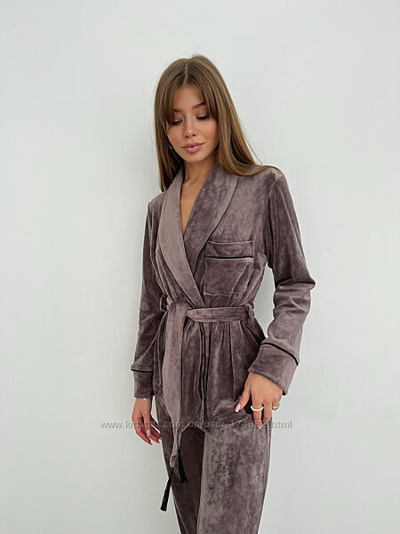 Подробное описание: Пижама женская christel 090 укороченный халат и завышенные штаны плюш велюр