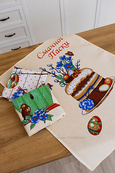 Набори великодніх рушників з рогожки та вафельні 60Х45 см – 3 шт. -